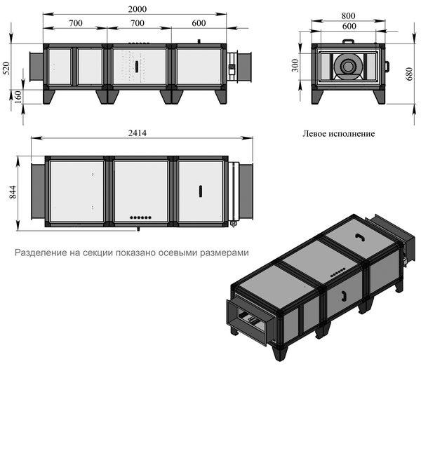 | Тип входа/выхода, ширина х высота | Гибкая вставка 600 x 300 мм |