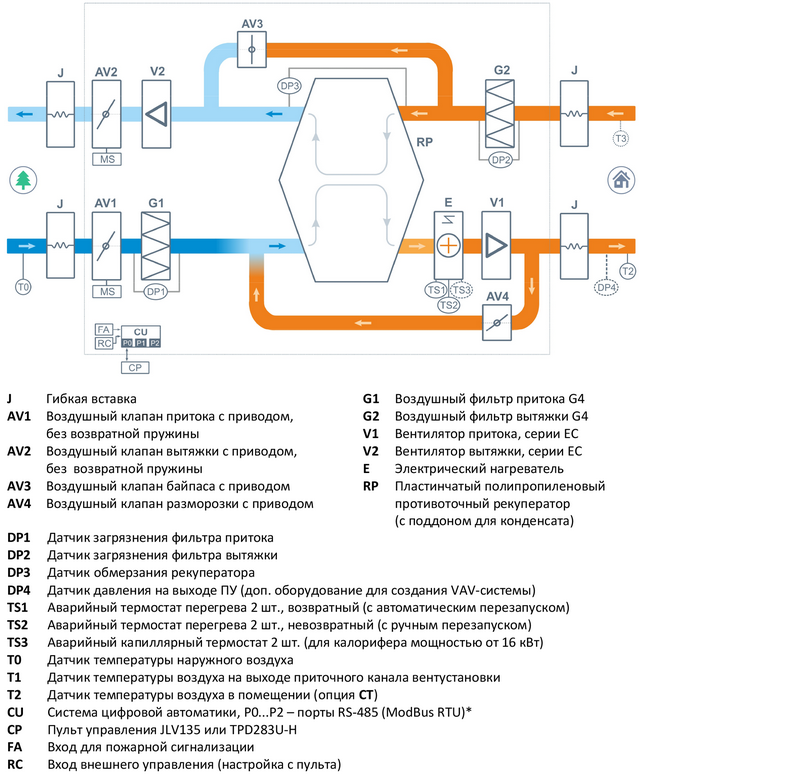 | Параметры вентилятора | Приток: 3270 об/мин | 1,1 кВт, вытяжка: 3270 об/мин | 1,1 кВт (серии EC, Китай) |
