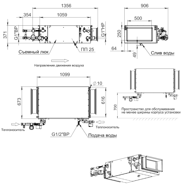 | Присоединительные размеры калорифера | 1" Н.Р. |